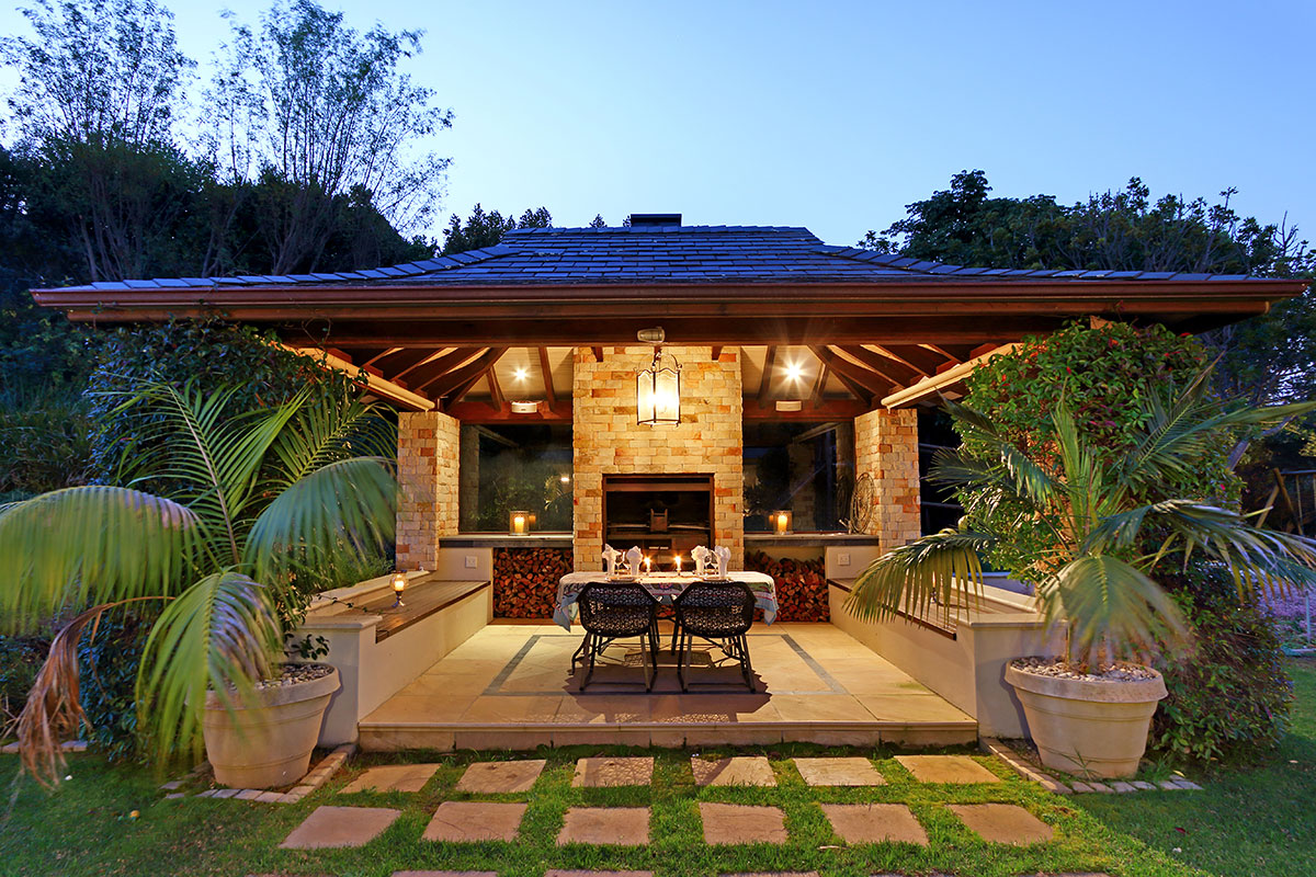 The large outdoor covered entertainment area can be completely closed in and has an outdoor fireplace.