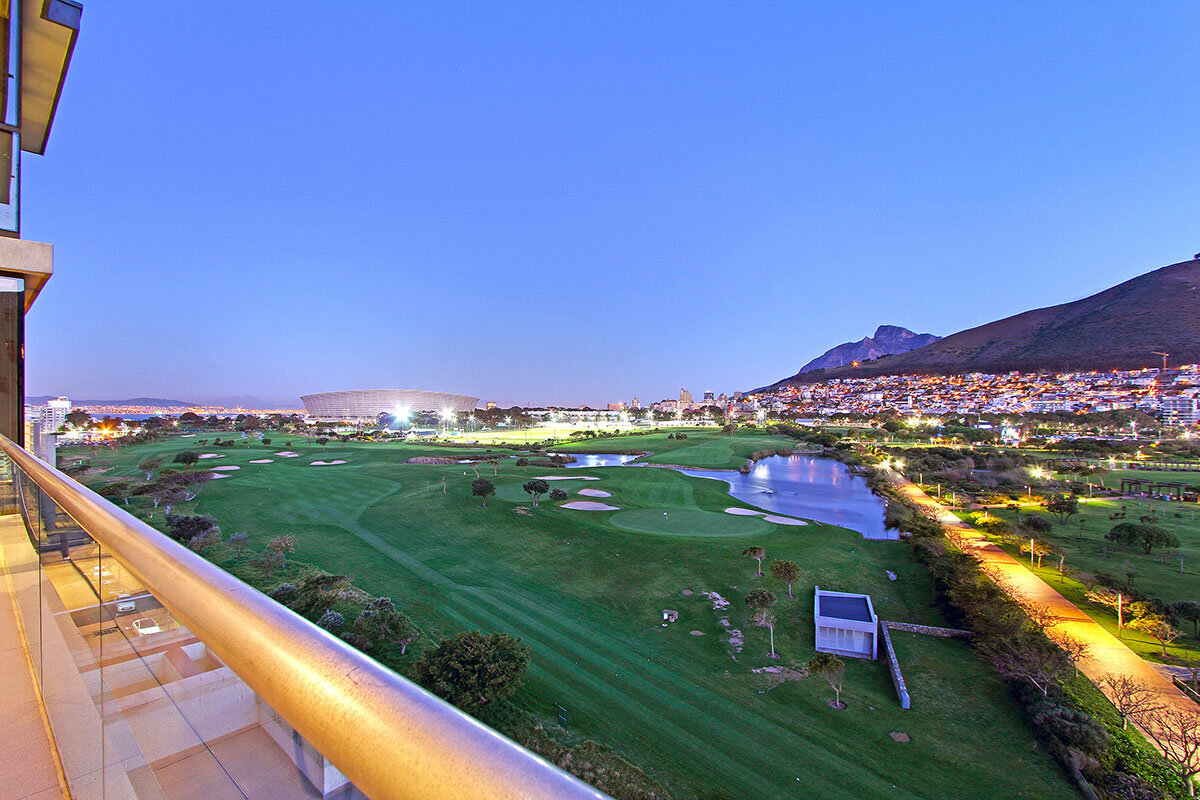 Luxurious 2-bedroom double volume apartment situated in the popular Amalfi building. The apartment has spectacular views of the ocean, mountains, golf course and City.