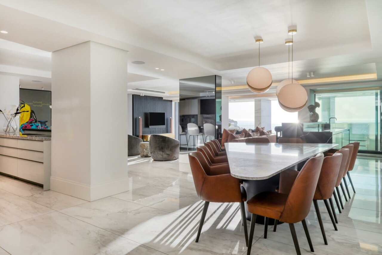 The Sea-Side Aurum 501 apartment in Aurum Presidential Suites offers luxurious accommodation in a spacious 4 bedroom apartment. This upmarket sought-after, state-of-the-art apartment features high-end finishes and modern amenities, including a fully-equipped gourmet kitchen, plush furnishings, and a private balcony, splash pool, and stunning views. The apartment comes with daily housekeeping, ensuring a relaxing and carefree stay. Additionally, the apartment includes access to a daily driver with a luxurious Land Rover, providing you with a personal chauffeur to take care of transportation needs.