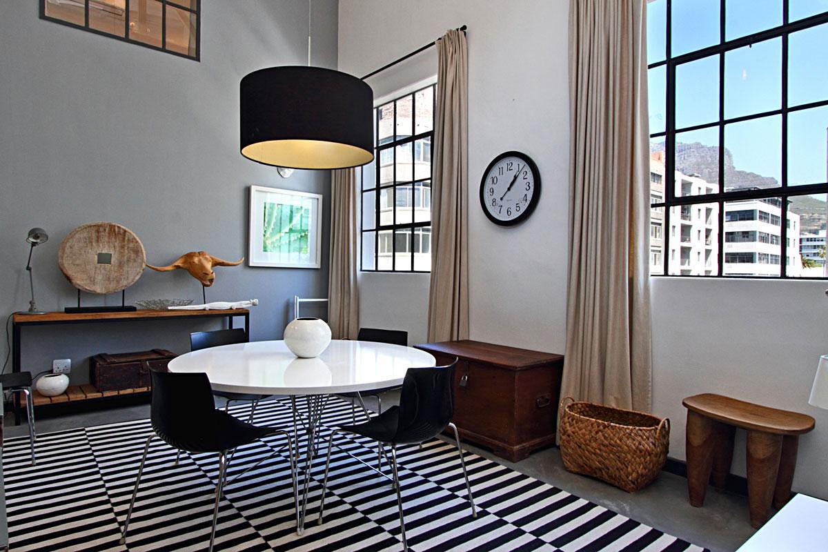 Industrial chic meets Cape Town cool in this stylish two bedroomed apartment. Situated in Bloem Street, in the heart of the city, Bandar Place is tucked away on the top floor of a nondescript block in the centre of Cape Town, providing a quiet, convenient escape with spectacular Table Mountain views.