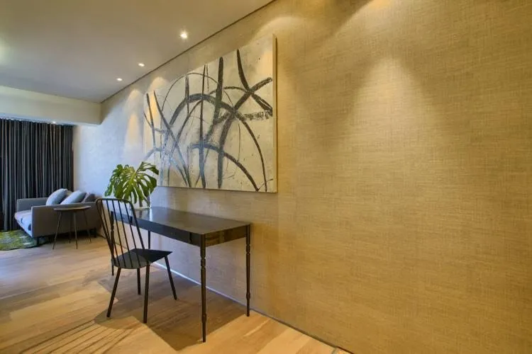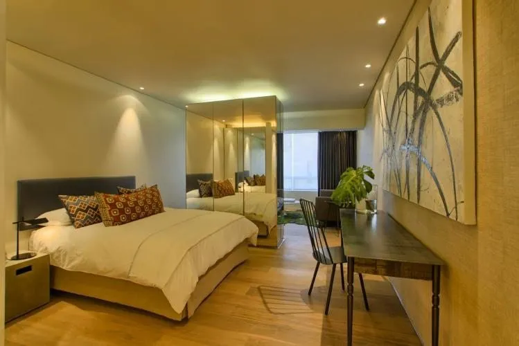 The bedroom comprises a queen size Serta bed with ample cupboard space. There is a desk in the bedroom.