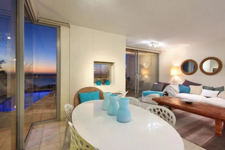 Clifton Edge is a large, upmarket villa located near Cape Town’s most popular beaches; opposite the steps to Clifton 1st and 2nd Beach. The double story apartment has a tasteful nautical theme throughout; with sea blue and light wood decor. The lower level is for entertaining and easy holiday living with the dining area and the lounge opening onto the large, tiled deck and pool area.