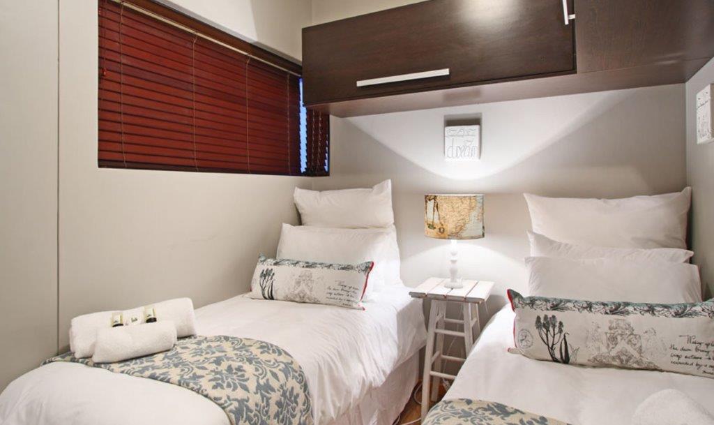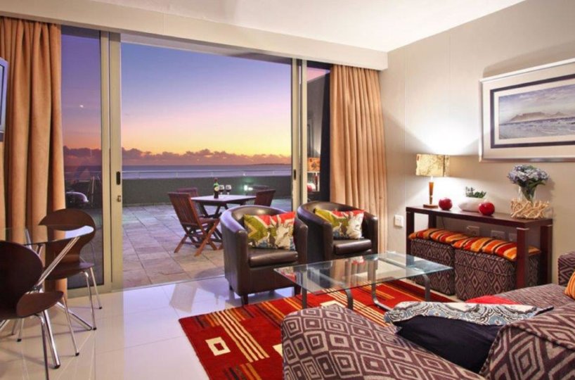 This exquisite two bedroom holiday rental is situated on the ground floor of the Infinity apartment complex. It features its own private balcony and barbecue facilities where holiday and business travellers can get unrestricted views of the Atlantic and Table Mountain. Its tailor-made for watching the sunset while sipping a glass of wine. The apartment has been refurnished recently with refined surfaces and styling for a contemporary, high-end atmosphere. Completely furnished, this vacation accommodation will feel like a second home. On those days when you would prefer to give your hands and mind a break from making use of the fully equipped kitchen, the well-known restaurant and pub of Doodles is an easy 5 minute walk away. The Infinity apartment complex is under 24 hour security and is completely secure. Guests have the convenience of secure underground parking. Additionally there is a communal indoor and outdoor swimming pool, squash court and gym, ensuring that this superb vacation destination is primed for those keen on fitness or wanting some fun with the family. Infinity overlooks the beach that is easily walked to in 2 minutes. Features: Main bedroom: - Double bed - Built in cupboards Second bedroom: - Two single beds - Built in cupboards Bathroom: - Bath and separate shower - Leads into both bedrooms Kitchen: - Fully equipped Lounge: - TV - DSTV - 1 * 2 seater couch - 2 * 1 seater couch - 2 * ottomans Terrace: - Braai facilities - Patio table with seating for 4 Building: - 2 * pools - Secure underground basement parking - Squash courts - Gym