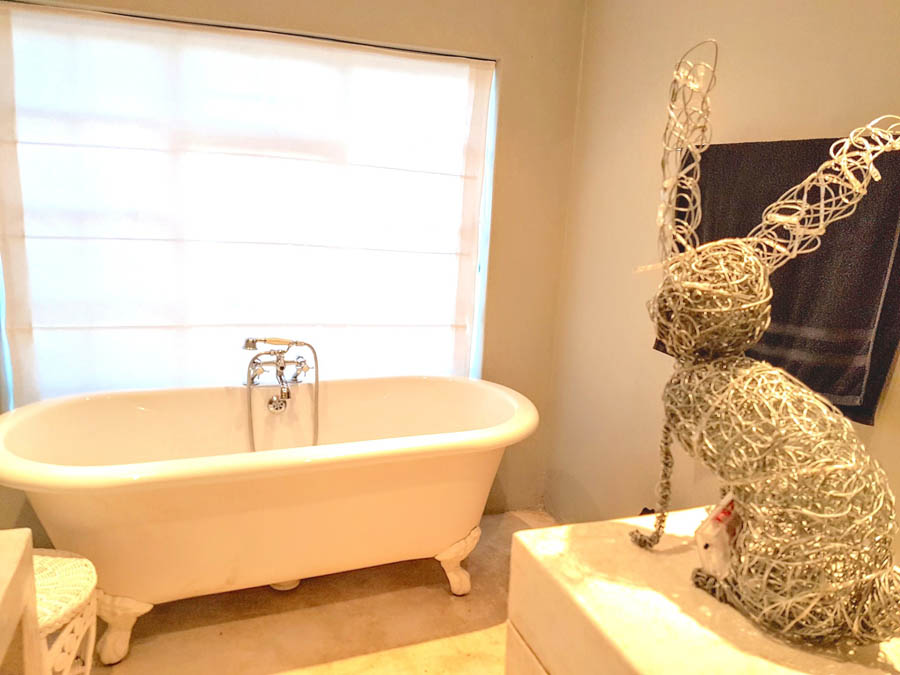 The home has 3 bedrooms, all en suite. The main bedroom has uninterrupted sea views. The other 2 bedrooms overlook a peaceful back garden. The garden is indigenous and also has herbs and lemons trees which the guests are welcome to use. There is also a shower in the back garden to wash off when you come off the beach. The kitchen is fully equipped, together with an extensive spice collection.