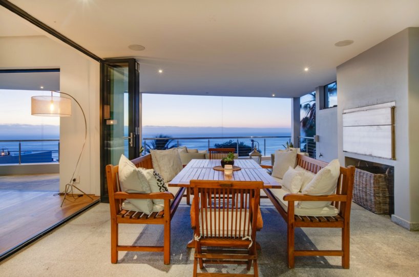 Both the living and dining spaces open out onto a shady sea-facing wide terrace with a barbeque area and outdoor dining for eight, sun loungers, and a heated lap pool. The house is fully secure with an alarm, has a double garage and ample on-street parking for guests. Villa Sorrento is conveniently located in the heart of Camps Bay and a short drive will get you to the beautiful beaches of Camps Bay and Clifton, the V&A Waterfront and Table Mountain.